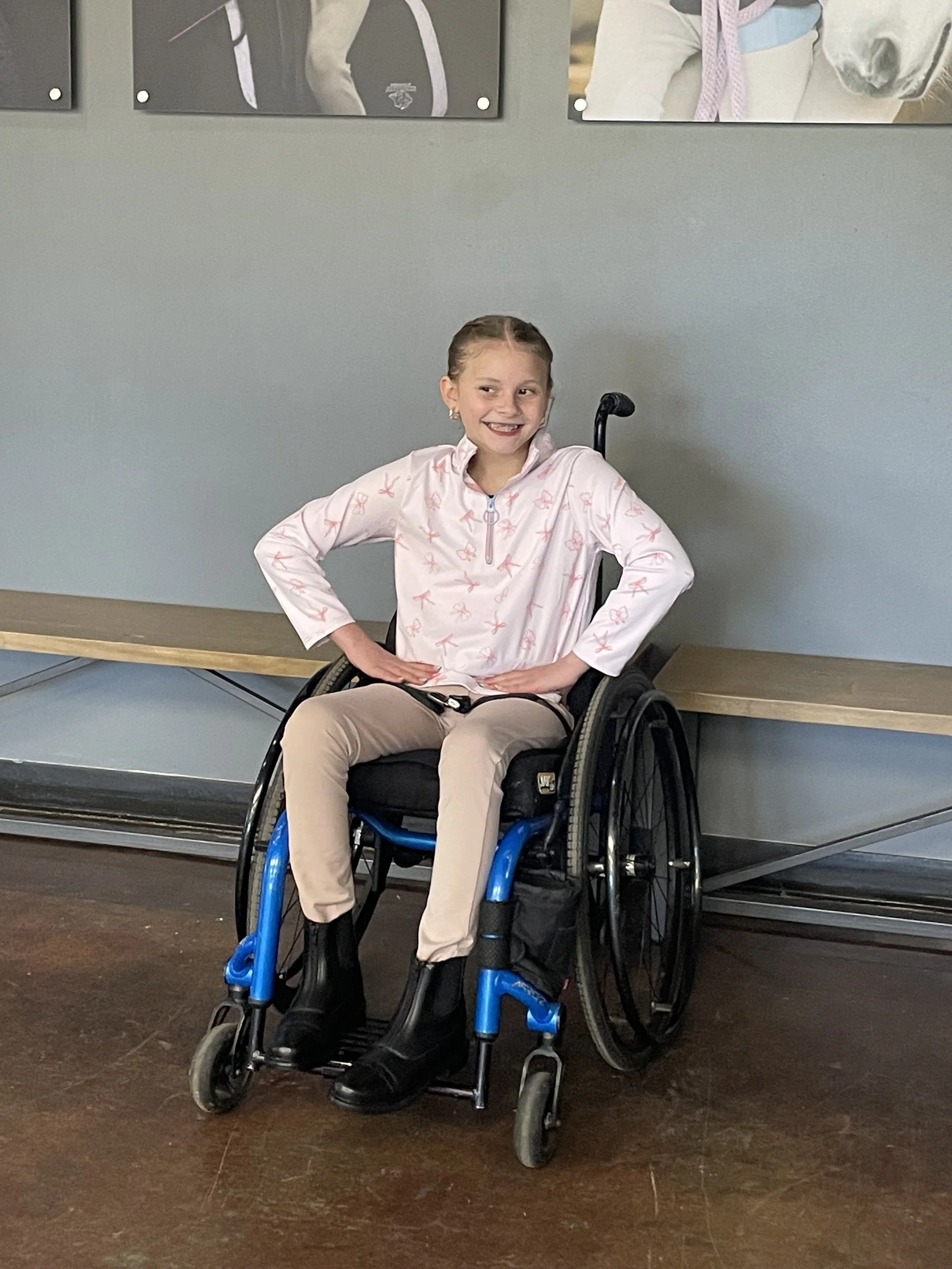 As part of this collaborative project, junior fashion students were paired with individual riders from Saddle Up! to design custom adaptive equestrian garments. The process began with building a personal connection, allowing us to understand each rider’s unique needs and preferences. My partner was a young rider who uses a wheelchair, and my challenge was to design an outfit that would not only meet her functional requirements but also reflect her fun, feminine style. The garment needed to balance accessibility with fashion, ensuring she could move comfortably while still feeling stylish and confident on horseback and on the runway.